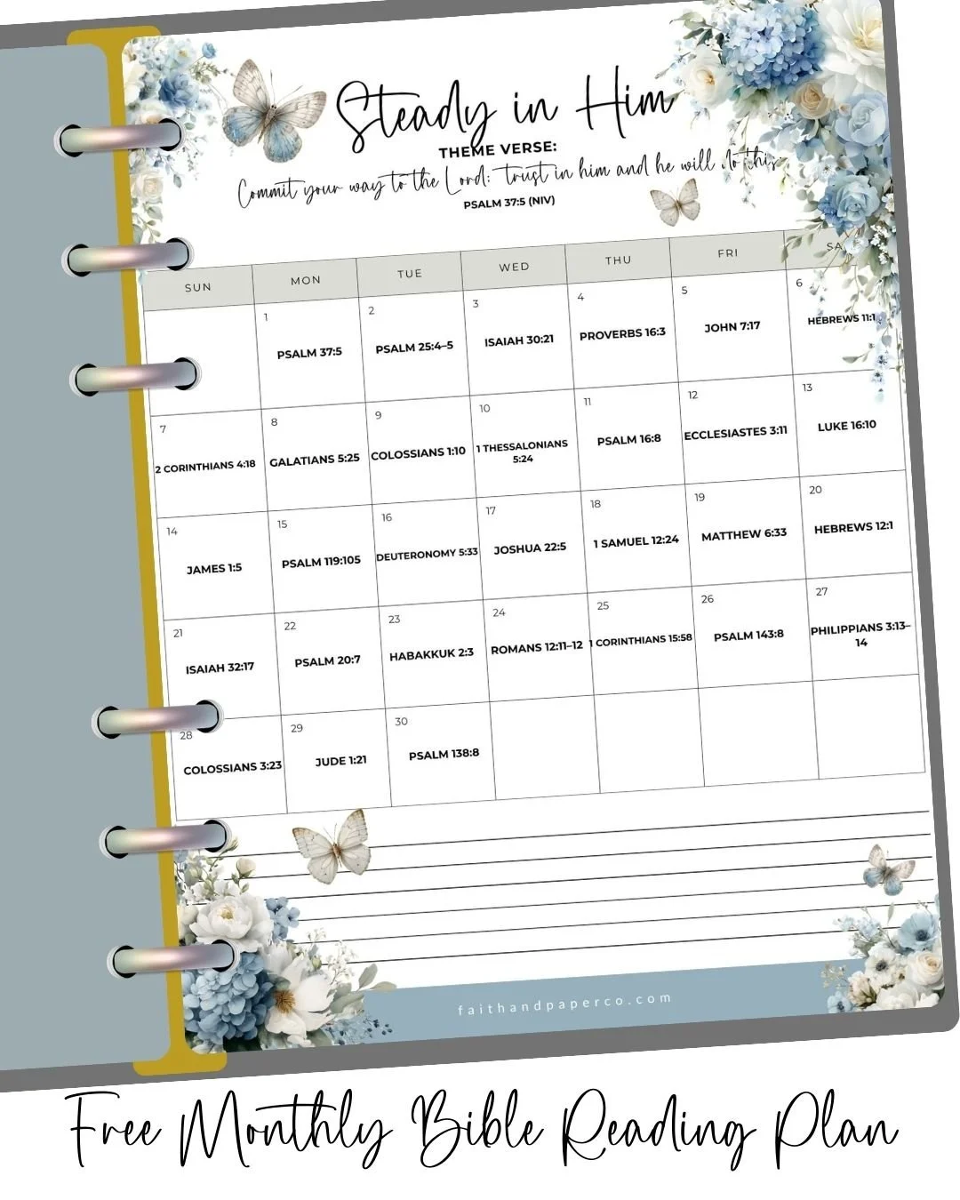 This month’s “Steady in Him” layout includes a simple Scripture reading plan you can tu