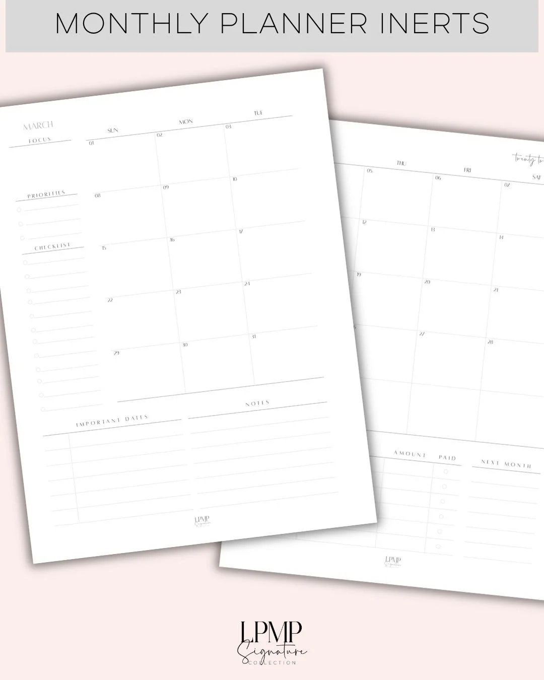 These monthly inserts were designed to keep everything in one place — focus, priorities, important
